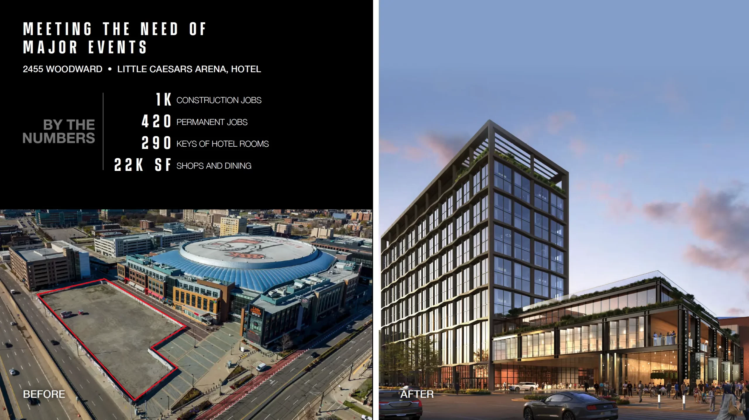 Un lote de estacionamiento junto a Little Caesars Arena, se convertirá en un hotel con 300 habitaciones, espacios comerciales y restaurantes.