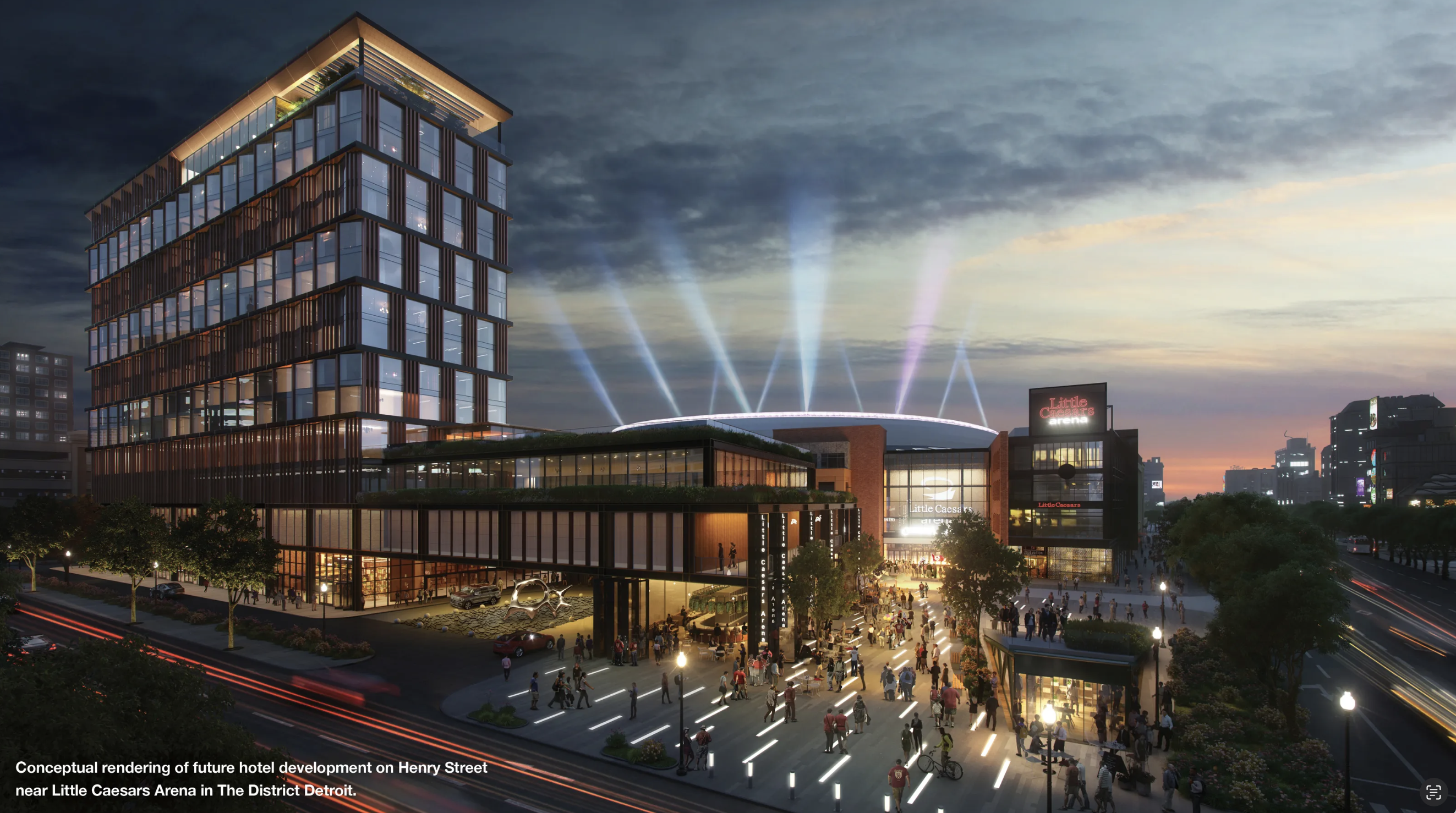 La zona conocida como District Detroit verá 3 hoteles frente a estadios deportivos para abastecer la demanda de hospedaje que generan los partidos.