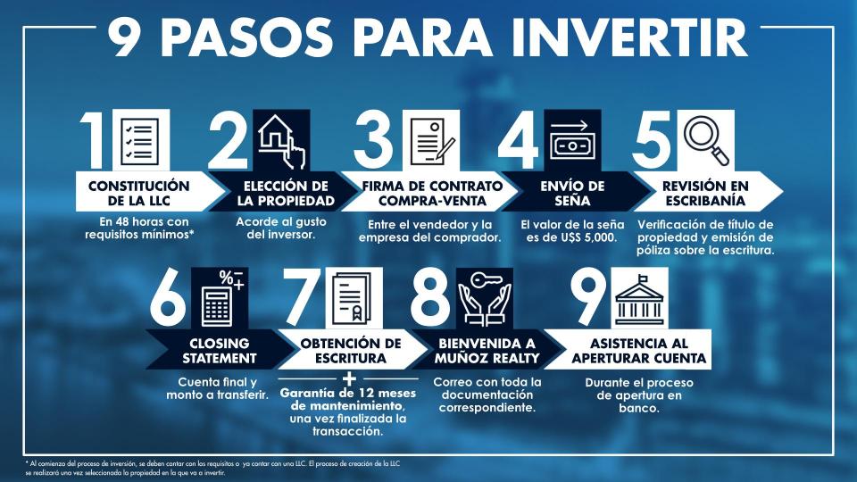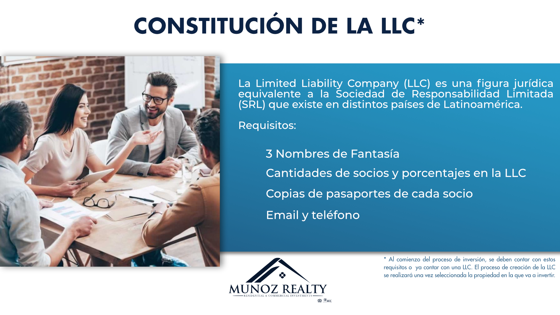 Munoz Realty brinda diversas opciones de bancos, en donde una vez elegida la propiedad se puede abrir una cuenta a nombre de la LLC vía electrónica sin necesidad de trasladarse a los Estados Unidos.
