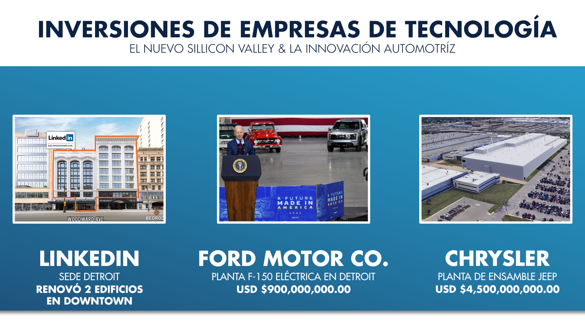 La disponibilidad de la ciudad, los grandes edificios y la cantidad de personal capacitado en diferentes áreas como mecánica y programación ha hecho que empresas tecnológicas pongan su atención en Detroit