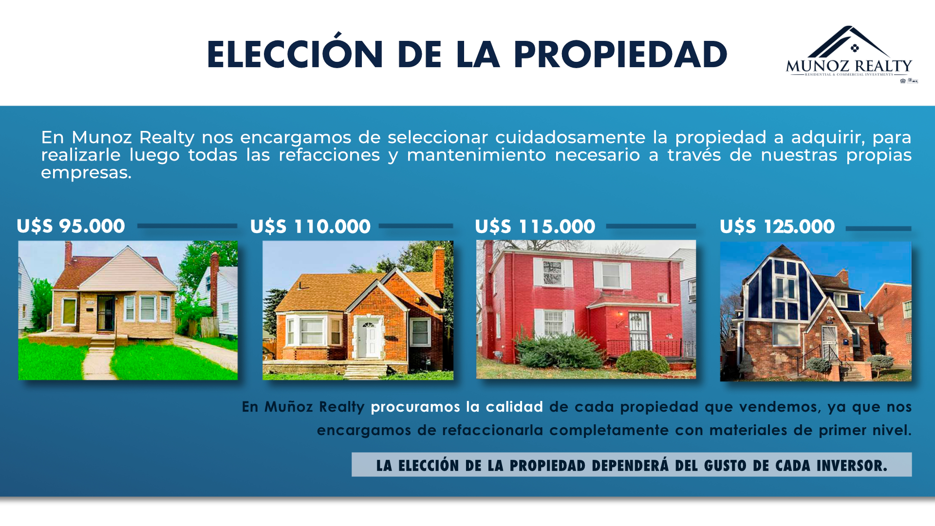 La elección de la propiedad será de acuerdo al gusto del inversor.